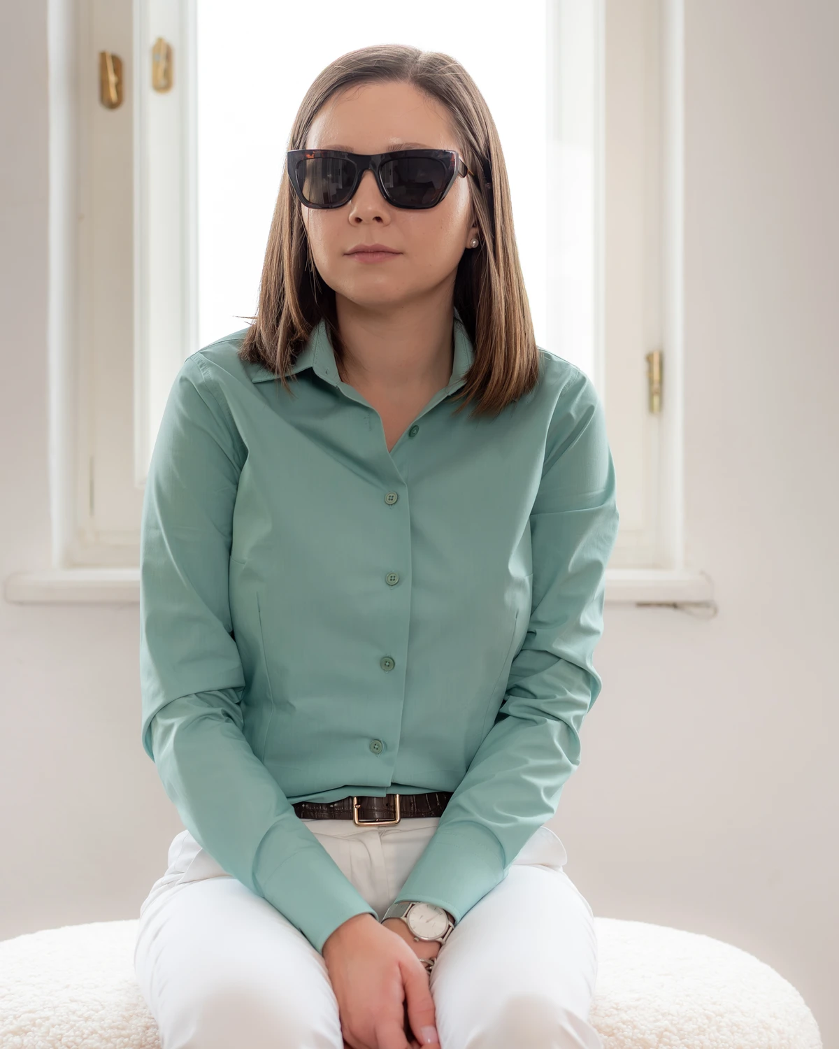 Koszula posiada dopasowany krój, zaszewki w przodzie i tyle oraz wąski rękaw. Wszystko to sprawia, że doskonale modeluję i podkreśla kobiecą sylwetkę. Wyróżnia się usztywnionym kołnierzykiem oraz mankietem, dzięki czemu jest bardzo elegancka. Idealnie pasuje do oficjalnych stylizacji, ale sprawdzi się również w przypadku mniej formalnych okazji, takich jak chociażby randka czy spotkanie z koleżankami. Guziki w koszuli barwione są do koloru tkaniny. Na prawym mankiecie umieściłyśmy subtelny haft z naszym logo.