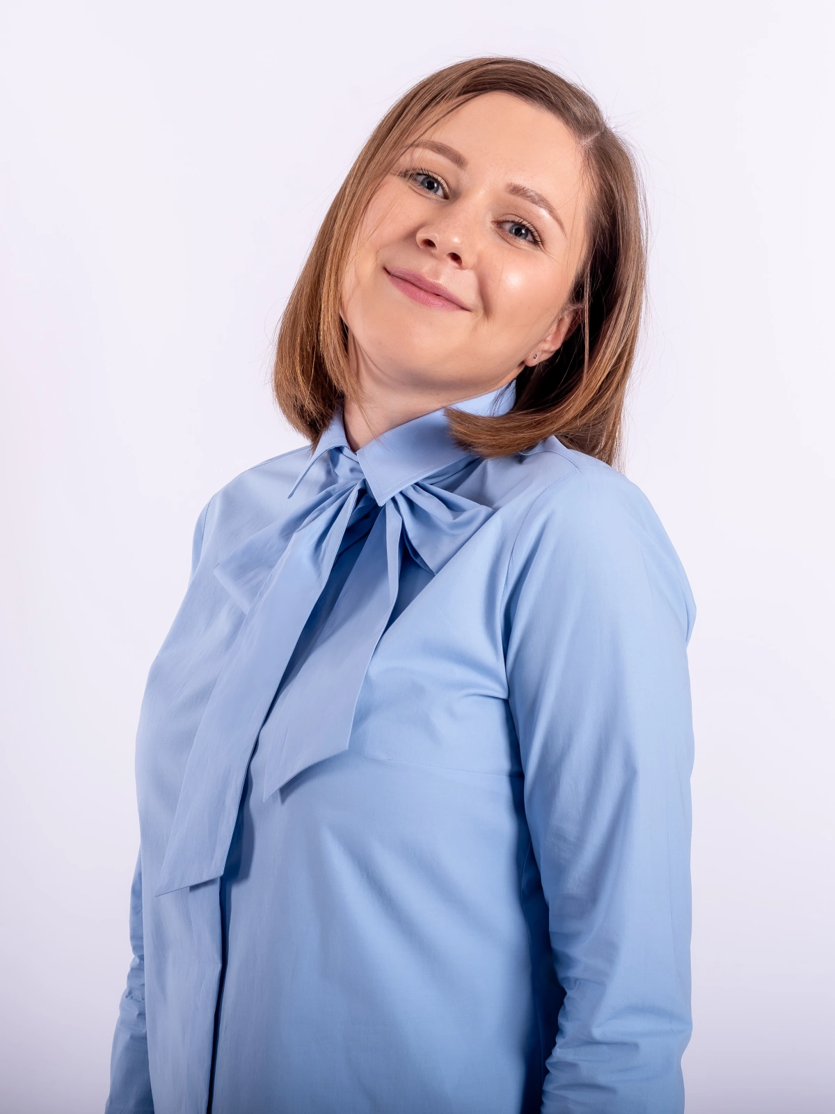 Niebieska koszula na spinki z kokardą – Hilda