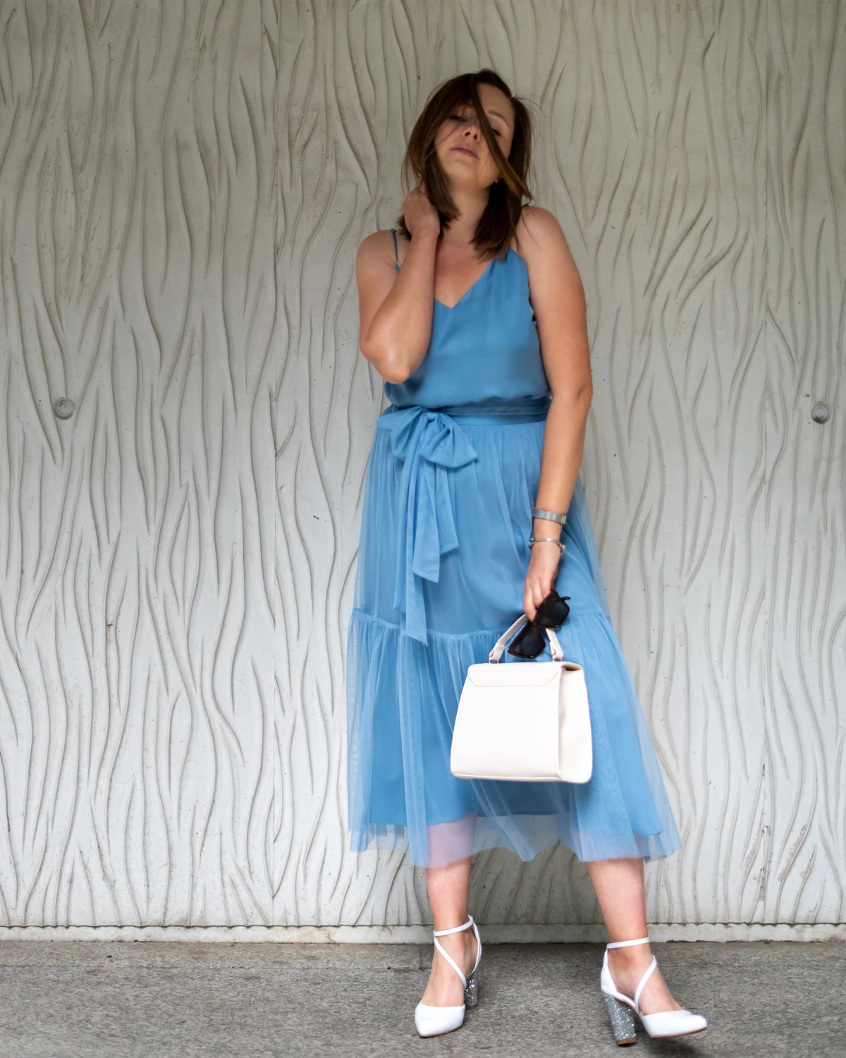 Niebieska spódnica tiulowa z paskiem – Elisa