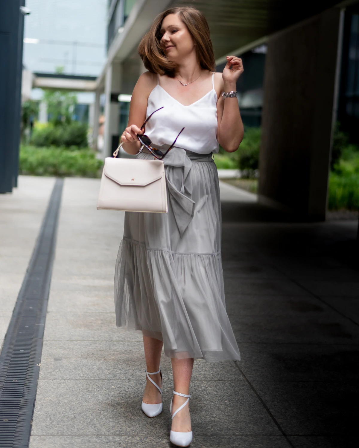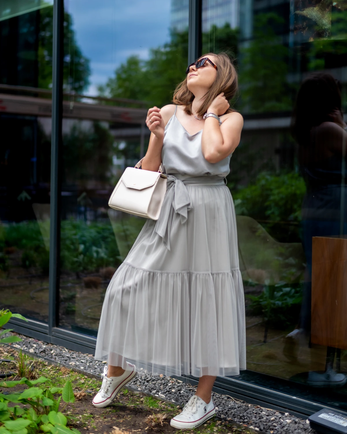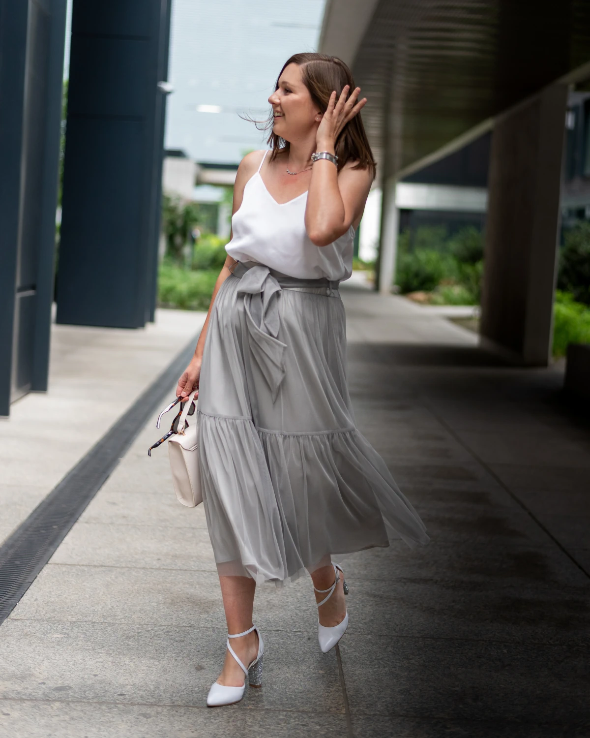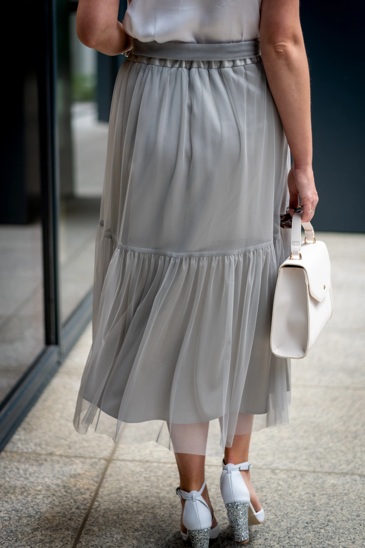 Jak nosić tiulową spódnicę w kolorze szarym?