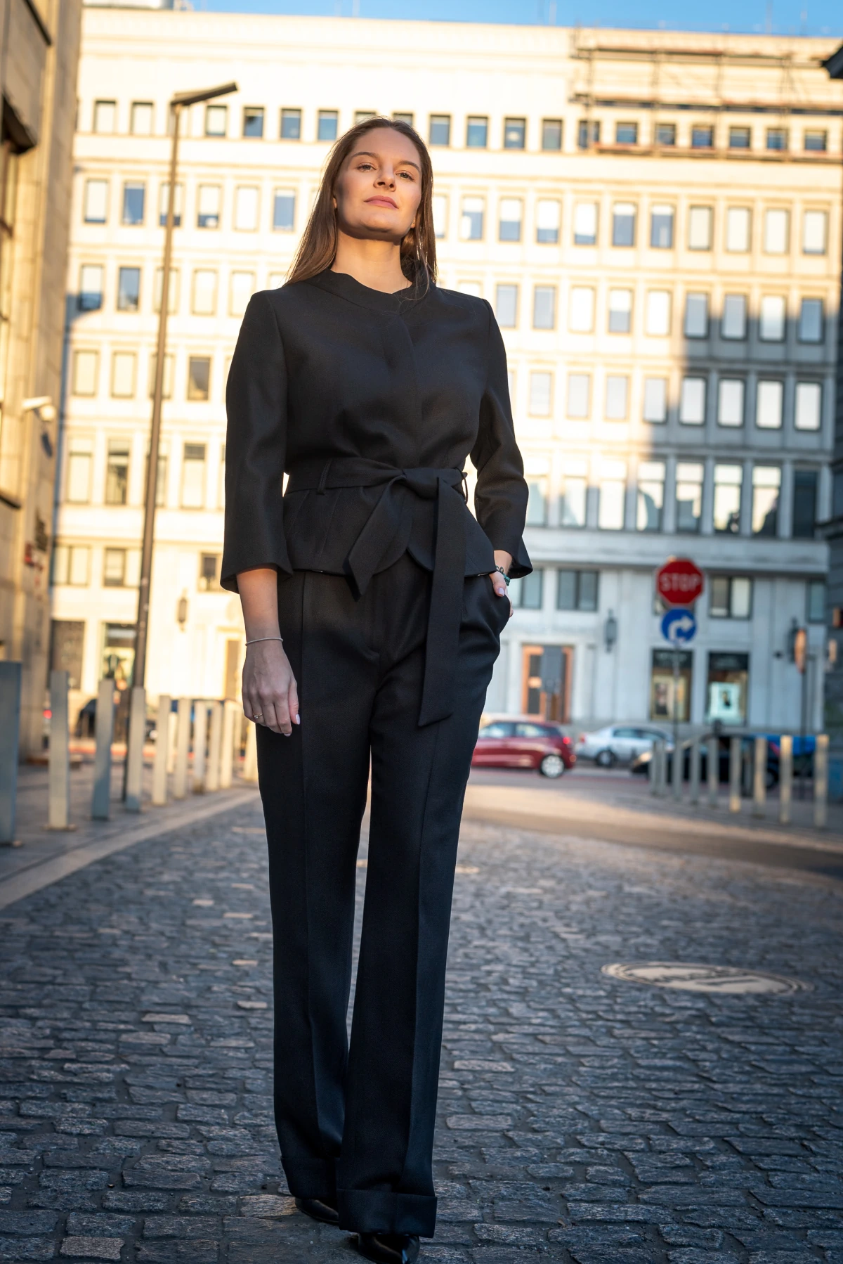 Do prezentowanych spodni szczególnie polecamy nasz żakiet Lisa oraz białą, klasyczną koszulę.