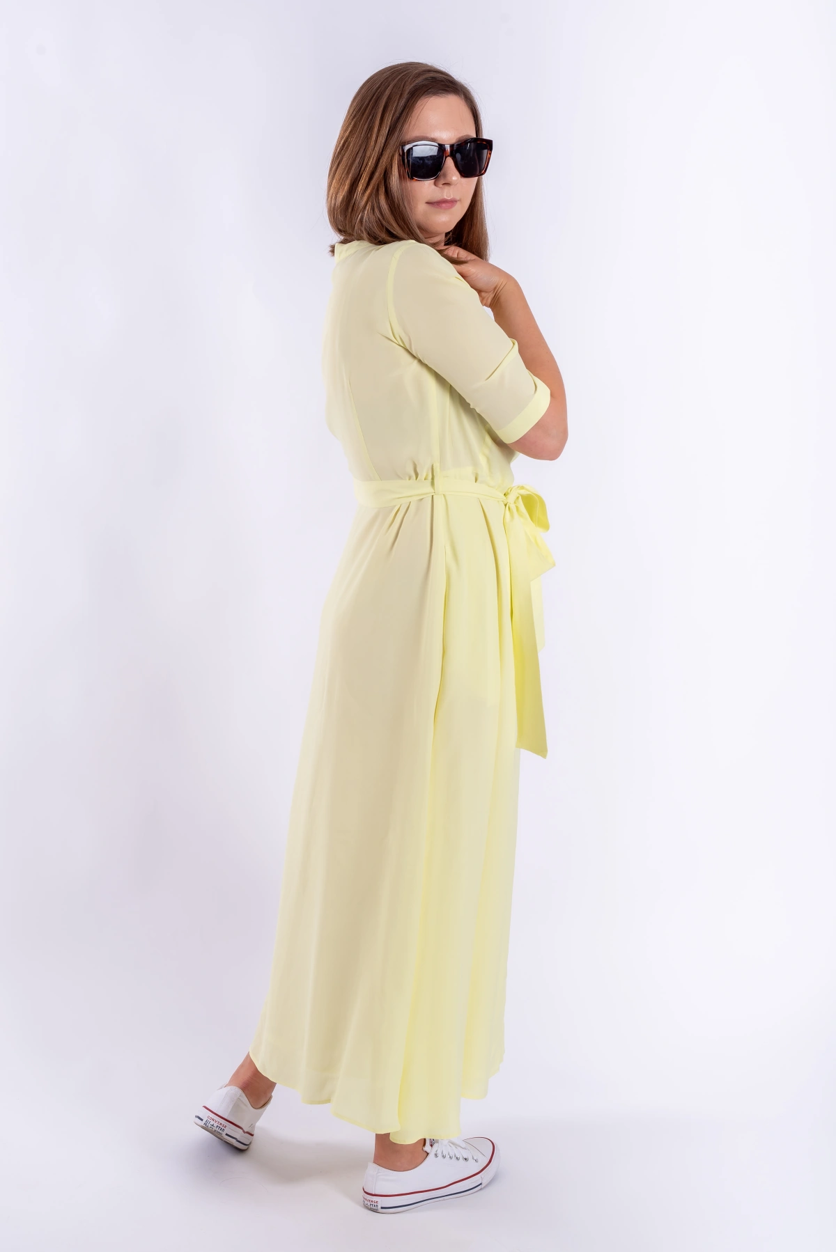 Długa wiskozowa sukienka zakładana Dalja – żółta