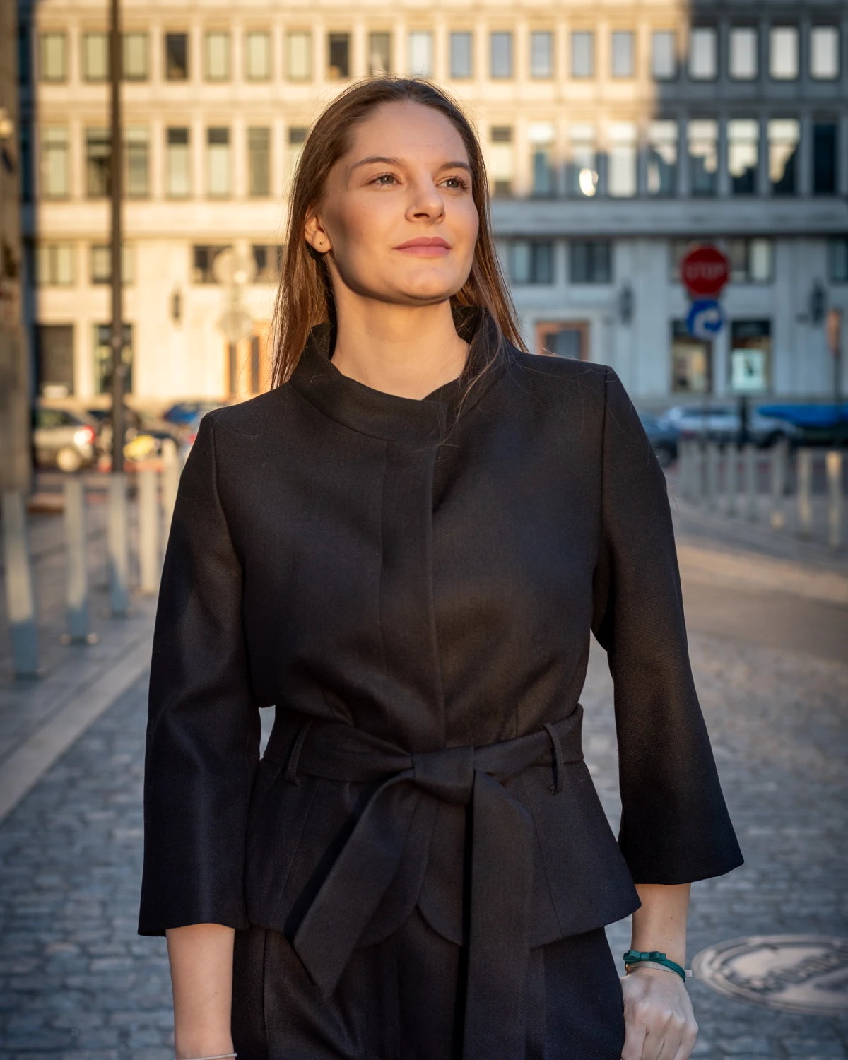 Krótki wełniany żakiet z paskiem – Lisa – czarny